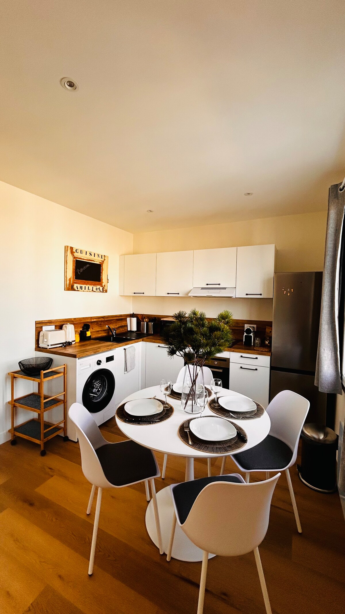 VÀlkommen till Natura! Denna 24 m2 stora studio, helt renoverad, ligger pÄ 1:a vÄningen utan hiss, mitt i hjÀrtat av Lyon Part-Dieu. Mycket lugnt och med utsikt över en innergÄrd. Mycket vÀlutrustat som ett 4-stjÀrnigt hotellrum: 160x200 cm sÀng, 50" Samsung "The Frame" TV, Netflix och Amazon Prime Video ingÄr, fiber-wifi, reversibel luftkonditionering, kök utrustat med Nespresso-kaffemaskin, stort badrum med walk-in-dusch, hÄrtork och förstoringsspegel! Ha en trevlig vistelse hos dig!