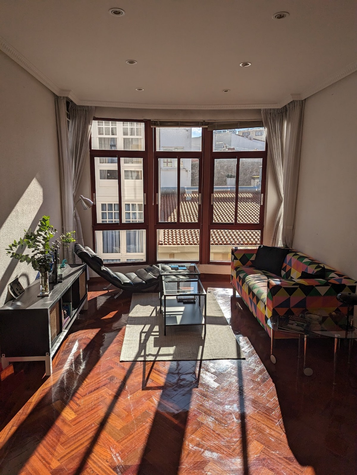 Solig, rymlig och varm trägolv lägenhet med högt tak, 3 fullt möblerade dubbelrum, badrum, separat kök och vardagsrum (TV och WiFi) i en lugn gågata. Några steg från Maria Pita och Azcagarra, de 2 vackraste torgen i staden, och bredvid hamnen med alla restauranger och barer, kan inte slå läget! Hoppas att du älskar det & det ger dig så mycket glädje som det ger oss.