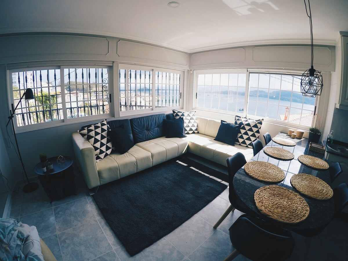Koppla bort från den dagliga rutinen och koppla av. Njut av lugna morgnar/kvällar, med fantastisk utsikt över Ria de Pontevedra. Från den fullt utrustade terrassen kan du njuta av lugnet i havet utan att ta ett steg. Beläget 200 meter från stranden och bara 5 km från Sanxenxo, är det ett idealiskt läge för att njuta av magin i Rías Baixas.