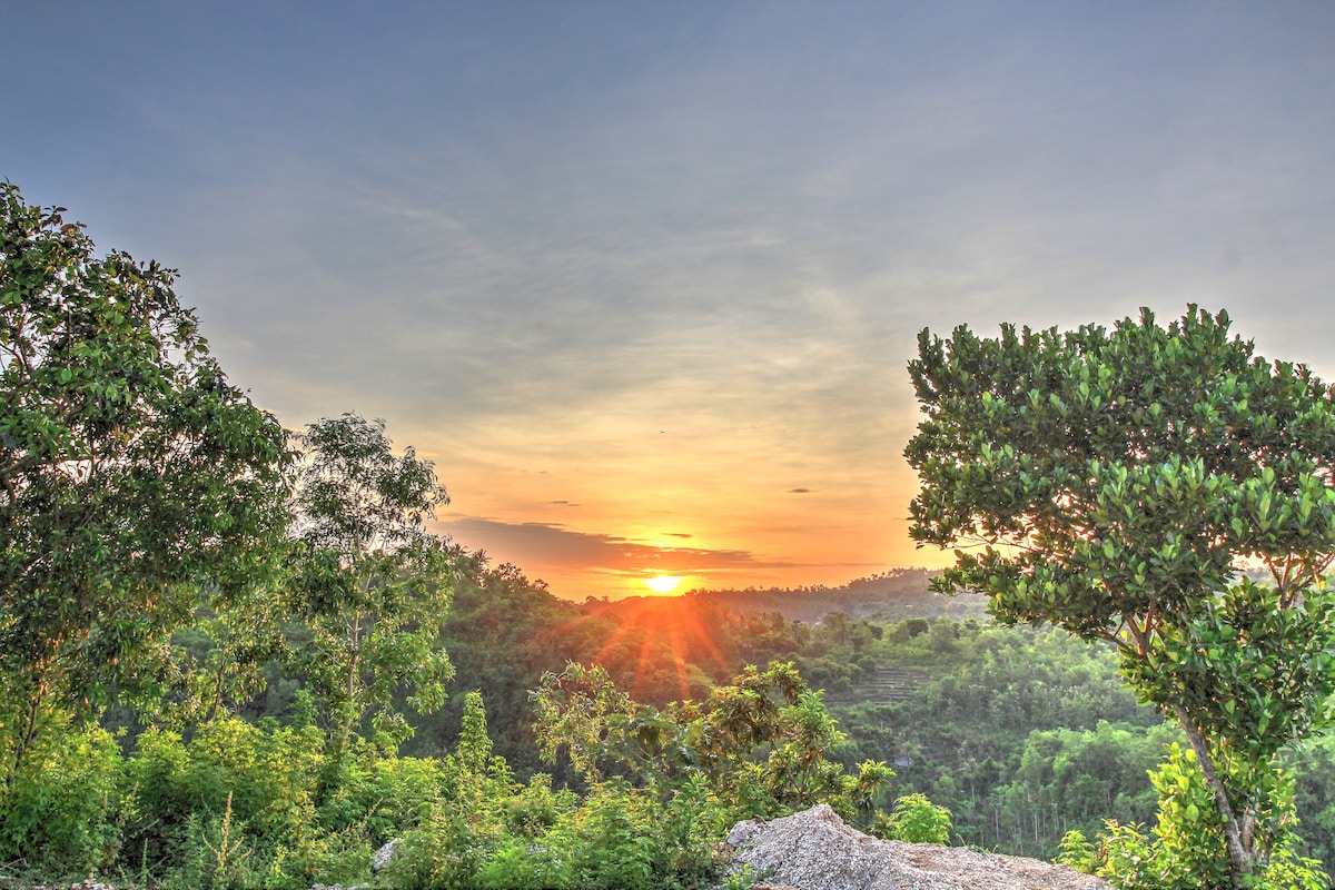 Bo i hjärtat av Nusa Penida, avskilt inom Balis fågelskydd, med flockar av fåglar som sjunger över dig! & omgiven av 100 år gamla träd! Ha en trevlig vistelse i ett unikt charmigt rum med pool och utomhusdusch! Endast 200 meter från Nusa Penidas mest kända område med restauranger, barer och strandklubbar och dykcenter! Bara några gångavstånd till en orörd strand med utsikt över Mount Agung med vacker koralllandskap perfekt för dykning och snorkling.