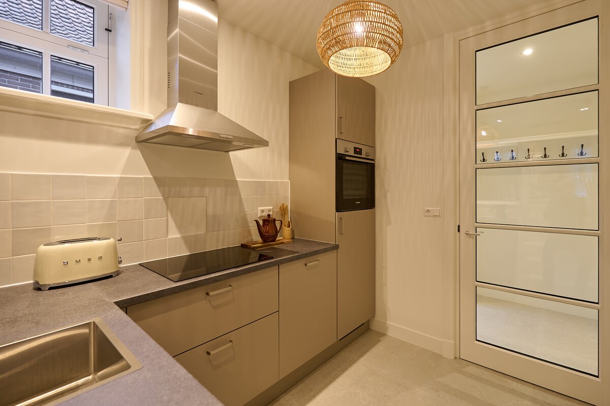 Vårt B&B är utrustat med alla moderna bekvämligheter, såsom ett modernt kök, Philips Hue-belysning, smart-TV och Quooker. Den mysiga verandan är komplett med en lyxig jacuzzi och vedspis. B&B med en stor privat trädgård och fri utsikt är helt avskärmad från gården med ett staket och endast tillgänglig för dig som gäst. Från den finska bastun på den intilliggande terrassen har du utsikt över de pittoreska stadsängarna. En härlig frukost efter önskemål är valfri.
