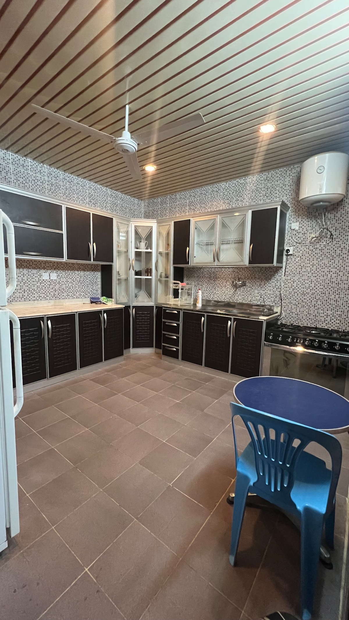 Bo i en lyxig bostad nära allt du vill besöka. Bekvämligheter: • Al-Mansak Park och Walkway (1 minuts promenad) • Moské (1 min promenad) • Commercial Street (1 minuts promenad) Lägenhetsfunktioner: • Innergård (uteservering + kolgrill) • Vardagsrum (sittgrupp + TV + matbord) • Sovrum med dubbelsäng och privat badrum • Kök (kaffebryggare + kylskåp + el- och gasugn + grill + automatisk tvättmaskin och torktumlare) • Gästrum med 4 sängar och eget badrum