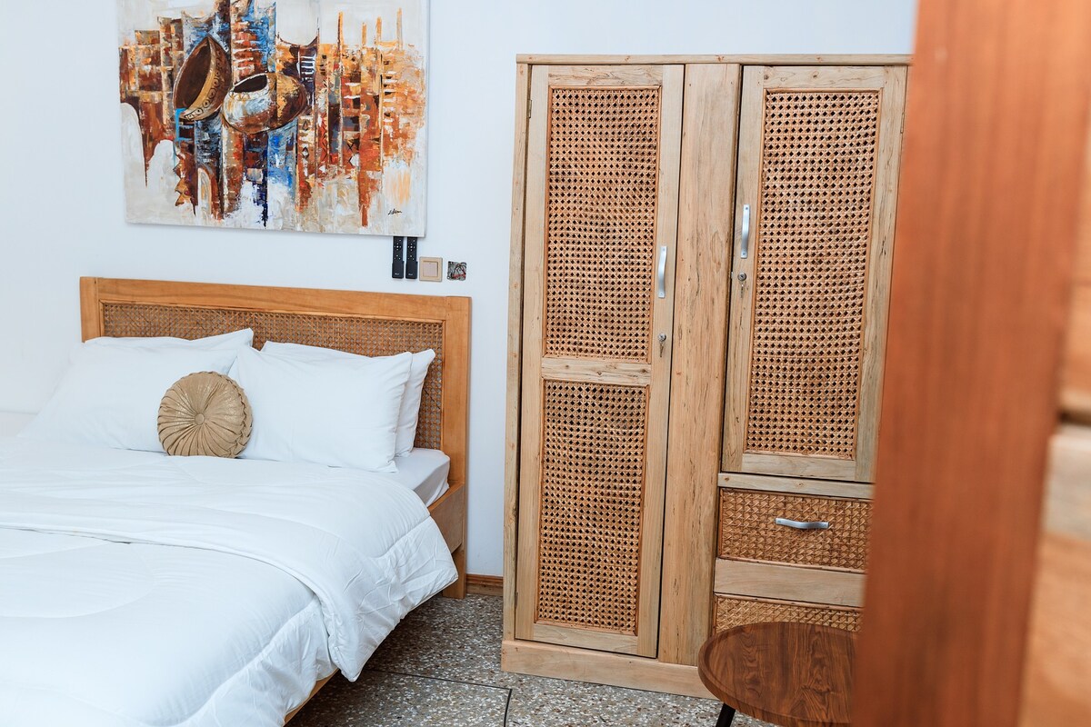 Kom och bo i vår lägenhet med 1 sovrum, en uppsättning för yrkesverksamma och besökare som söker enkel tillgång till och bekvämt boende i Accra. Detta hem hemifrån har allt du behöver, från ett skrivbord, bra wifi och dagtid generator under veckan (observera att generatorn inte är dygnet runt). Den delar en förening med ett arkitekturkontor och en annan stuga, så under dagen kan det vara en livligare miljö. Tesano är till stor del ett bostadsområde och lugnt område. Du kommer att älska det!