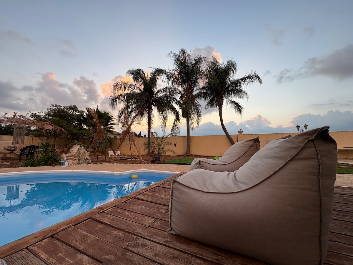 Modulär enorm enhet för upp till 12 gäster Fantastisk pool i kibbutzen framför Libanon-bergen. 3 luftkonditionerade sovrum: 1. Dubbel madrass på golvet, enkelsäng. 2. Dubbel madrass på golvet, enkelsäng. 3. Dubbelsäng, barnsäng . Soffan öppnar upp till en dubbelsäng i slutet av vardagsrummet Ytterligare två madrasser kan läggas till. Stor och intim trädgård, fruktträdgård, trähus och en mängd leksaker. Smart TV. Inomhus/utomhusmatplats, grill, rökare, hängmatta och sittplatser och kul i trädgården. Fullt utrustat kök, glänsande sängkläder och handdukar, och extra renlighet. Varm och mänsklig gästfrihet. Väntar på dig.