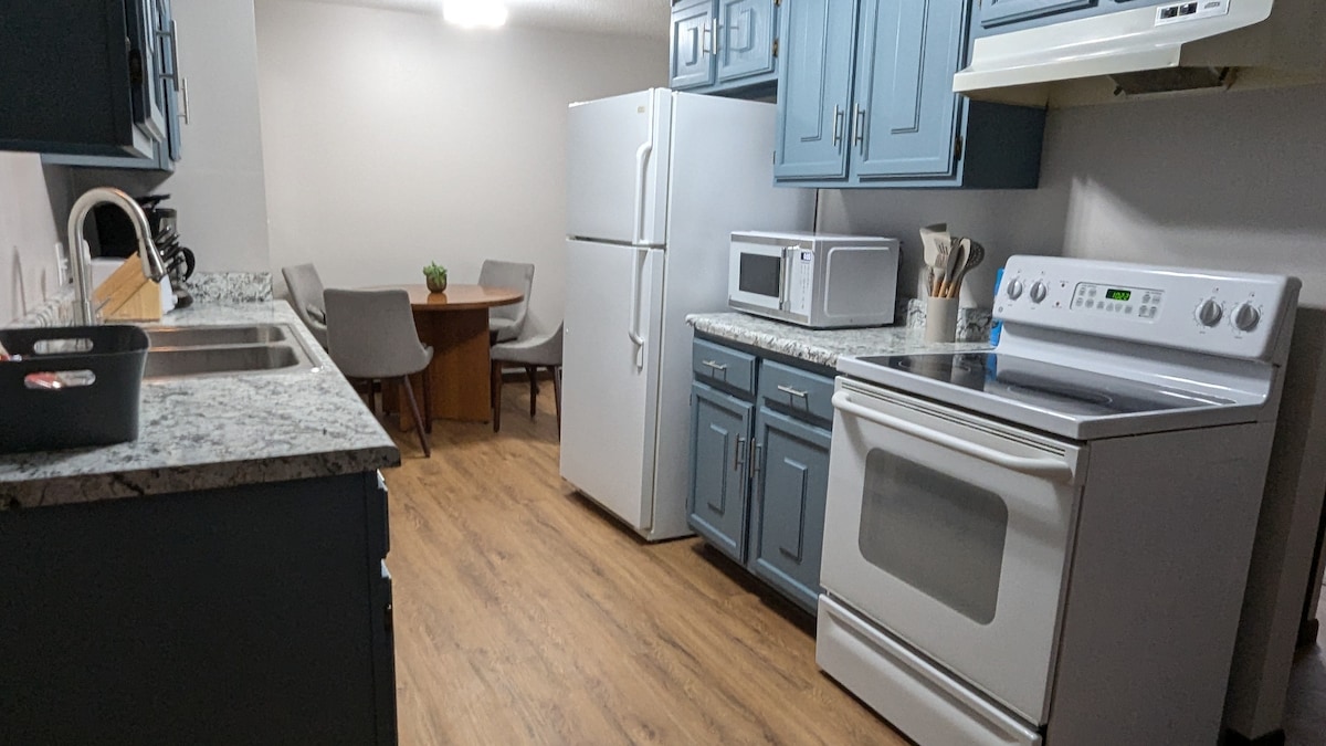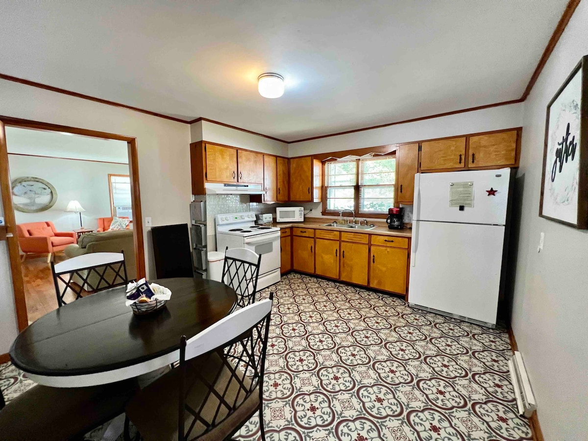 Spacious and newly remodeled, close to hospital and colleges, 1Gig WiFi, laundry in house, fully stocked kitchen, 55-in. Fire TV, and even a piano! Main-level half duplex. Cathedral ceilings make the space feel much larger than 1000 sq. feet! Within 1-2 miles of Northeast Regional Medical Center, AT Still University, Kraft foods, downtown Kirksville, and Truman State University. Playground, bike trail, and paved walking trail nearby.