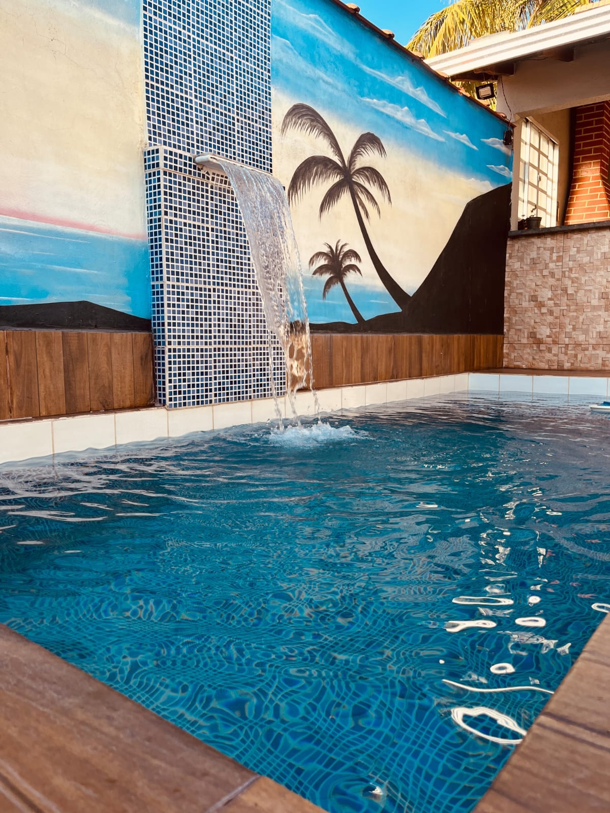 Casa Conchegante med pool och gourmetutrymme Koppla av och njut av fantastiska stunder i detta boende. Boendet har: 2 bekväma rum: 1 med queen-säng + 1 dubbelsäng och takfläkt 1 med 2 dubbelsängar + 1 enkelsäng Vardagsrum med TV Box och Wi-Fi internet Köket är utrustat med kylskåp, frys, spis Garage för upp till 3 bilar Uteplats med egen pool Gourmetutrymme komplett med grill, rustikt träbord med 4 bänkar + 3 loveseat