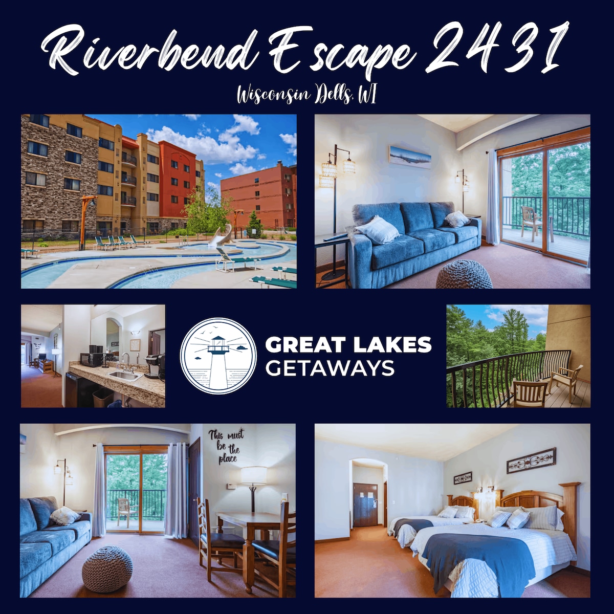 Please Note: This property is a condo conveniently located at the Chula Vista Resort. Indoor water park passes are not included, but you will enjoy guaranteed first floor accommodation, a personalized experience, games and upgraded furniture, decor, and supplies. -Discounts- March and April all discounted! On the Wisconsin River = stunning views First floor condo = convenience + porches No resort fees Ideal for groups up to 12
