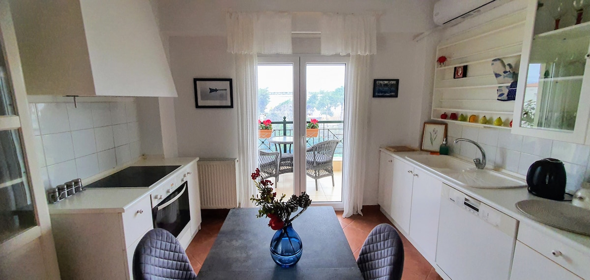 Ett vackert och mysigt Sunset House med en underbar havsutsikt, bara några steg från kristallklart hav. Detta privata hus har två sovrum, vardagsrum med kök, två badrum, trädgård och stor balkong med fantastisk utsikt. Det har också en utomhusdusch och en grill i en trädgård. Stranden är mycket nära till fots. Byns största torg med marknader och restauranger ligger bara 7 minuters bilresa bort.