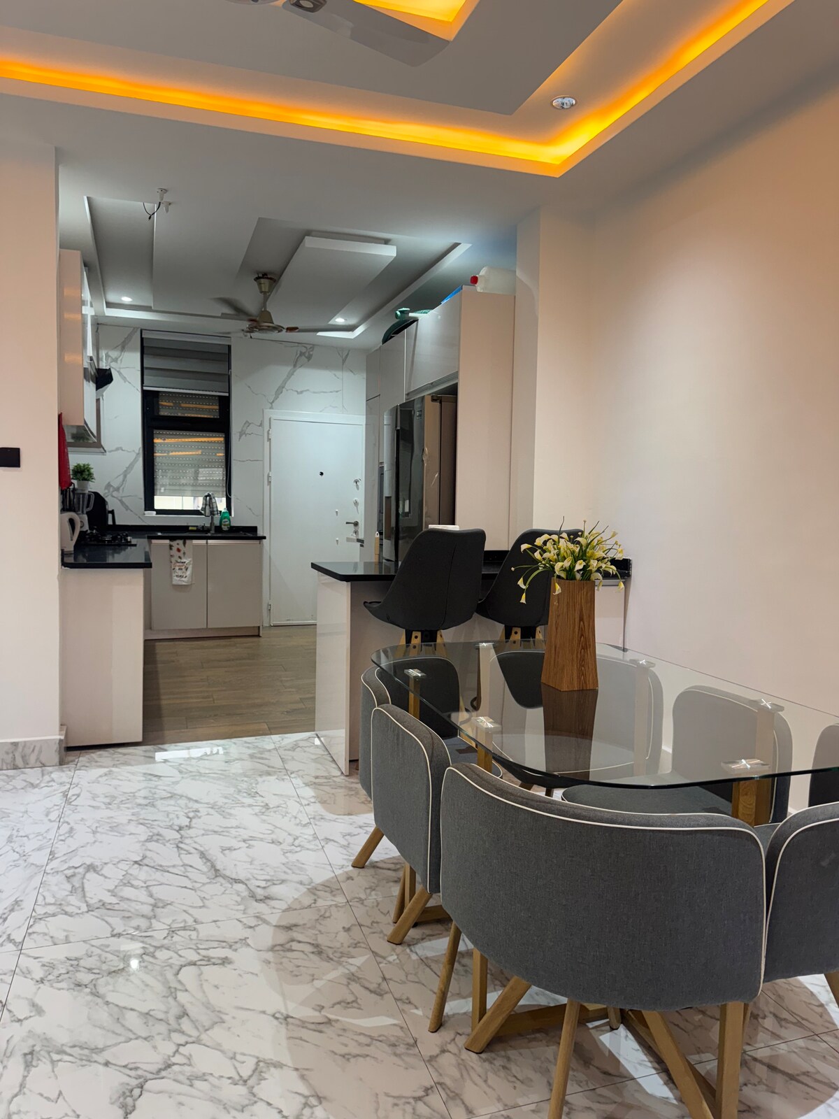 Modern komfort i en elegant, vackert upplyst lägenhet med ren modern finish och en varm kvällsglöd som omedelbart känns exklusiv och inbjudande. Beläget i ett lugnt område 19 minuter från flygplatsen, 17 från accra mall, 10 minuter från Atlantic Mall och cirka 30 minuter från Aburi Mountains, med enkel tillgång till butiker, affärsnav och fritidscenter. Du är aldrig långt borta från allt du behöver men ändå tillräckligt undangömd för att koppla av och varva ner. En chic tillflyktsort du kommer att älska att komma hem till.