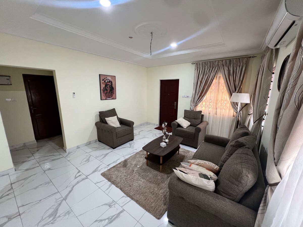 Välkommen till LAS Villa, ditt privata boende i Ogbojo, East Legon, Accra. Det ligger bara 18–20 minuter från Kotokas internationella flygplats och nära restauranger, affärer och nattliv. Villan har två rymliga sovrum med eget badrum, modern inredning och en privat pool. En reservgenerator säkerställer oavbruten komfort, och en vaktmästare på plats finns tillgänglig för att hjälpa till under din vistelse. En privat kock finns också tillgänglig på begäran för en mer personlig upplevelse.