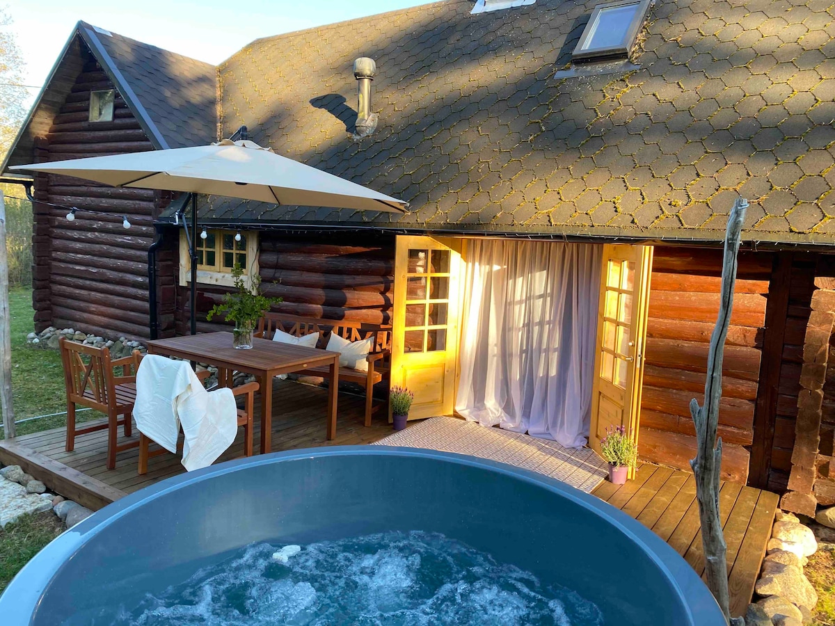 Ett skogshus med en stor privat trädgård ligger 30 minuters bilresa från Tallinn. Inne i huset finns en elektrisk bastu (max 6h ingår i priset på huset), bubbelpool (+50eur) och en utomhus vedeldad panoramabastu(+ 30eur) På den stora terrassen finns 2 solstolar och utemöbler, och gästerna har också en grill till sitt förfogande. Luftkonditionering, golvvärme i dusch/bastu och öppen spis inomhus i vardagsrummet