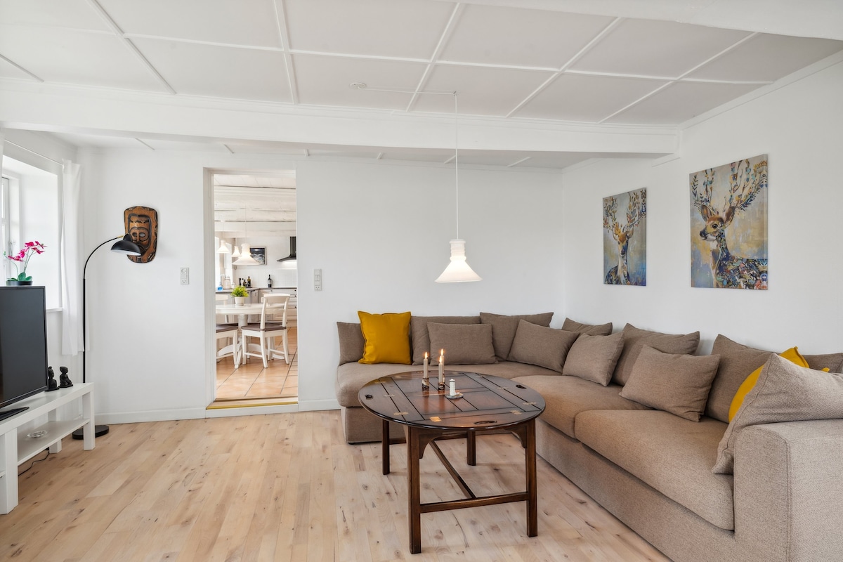 Ærø har förtrollande kustlinjer, vilda vikar, idylliska hus och färgglada strandstugor. Närmaste strand ligger ca 3 km bort, de charmiga byarna Ærøskøbing och Marstal med sina populära, långa stränder ligger 5 respektive 8 km bort. Huset med terrass och stor trädgård har på bottenvåningen ett stort integrerat rum för matlagning, matlagning och boende, en hall med arbetsplats och badrum. På övervåningen finns 2 rymliga gästrum med 4 till max. 6 bäddar.