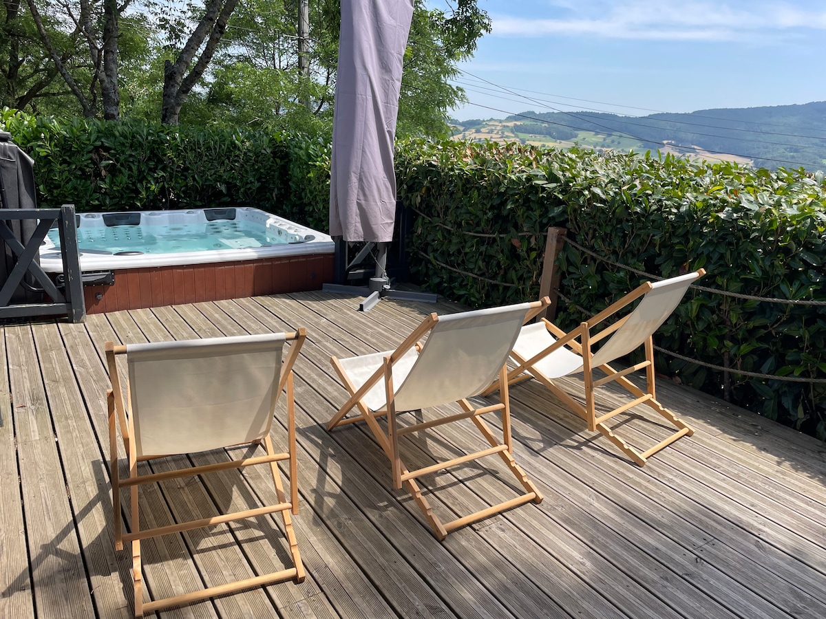 Njut av den charmiga miljön i detta naturboende med en storslagen utsikt över kullarna och slottet för dig att ladda om. Uppvärmd stuga, fullt utrustat kök, 2 sovrum med dubbelsäng, 1 med våningssäng, badrum, separat toalett. Stor terrass med privat jacuzzi, plancha och brasier för stunder av delning med familj eller vänner Direkt promenadstig, ridning, karting, vargpark... Fördukar och sängkläder 45 min från Lyon Kolla in den