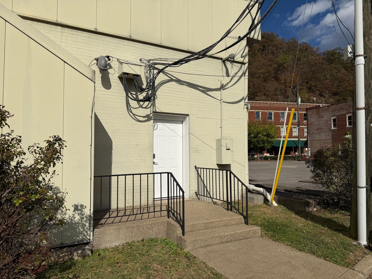 Mysig 1BR/1BA med queensize-säng + värme och luftkonditionering. Privat badrum med dusch, toalettartiklar och handdukar. Vardagsrum med bäddsoffa, öppen spis och 50 tums TV. Pentry med mikrovågsugn, kylskåp, bord för fyra och väsentligheter. Njut av kaffebar, täckt veranda och däck. Restauranger, livsmedel och nattliv inom 2 mil. Släpvagnsvänlig parkering och närliggande tillgång till spår. Platt, bekväm plats på Route 119 mellan Pikeville, KY & Logan, WV. Bergsutsikt med butiker och restauranger inom gångavstånd. Bekväm, ren och bekväm vistelse!