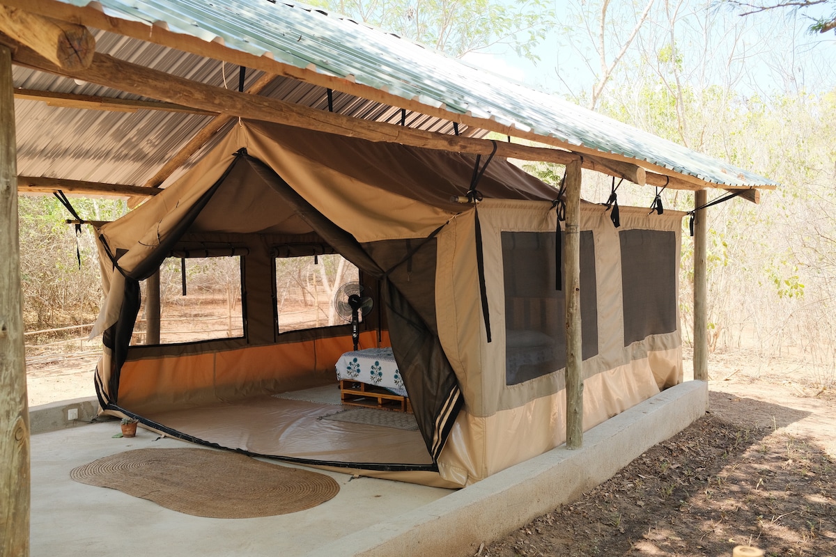 DIN MEST ÄVENTYRLIGA VISTELSE i Namibia är här.... Kom och upptäck ett unikt boende i Namibia. Bara 15 minuters bilresa från Tsumeb, och en timme från Etosha National Park. Njut av tystnaden i oförstörd buskomgivning, vacker bergsutsikt och fantastisk fågelskådning. Du kommer att sova i ett lyxigt tält utanför allfarvägarna, med privat pool och rymligt eget badrum. Lyxtältet är smakfullt inrett och även miljövänligt; alla elektriska apparater är soldrivna.