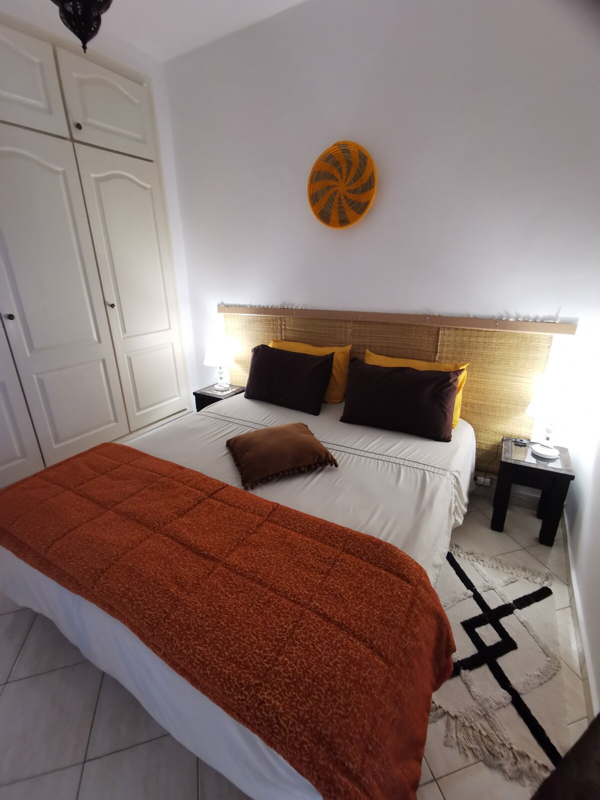 Välkommen till vår ljusa och rymliga lägenhet som är idealiskt belägen på bottenvåningen i en byggnad i ett livligt område i hjärtat av Agadir. Belägen några steg från de bästa sevärdheterna, -restauranger café Och närbutiker - kollektivtrafik - Stormarknad och apotek i närheten, stranden 12 min bort Perfekt för par, familjer eller affärsresenärer; en liten gest för att få dig att känna dig välkommen! Vi erbjuder en korg med färsk frukt och vattenflaskor gratis