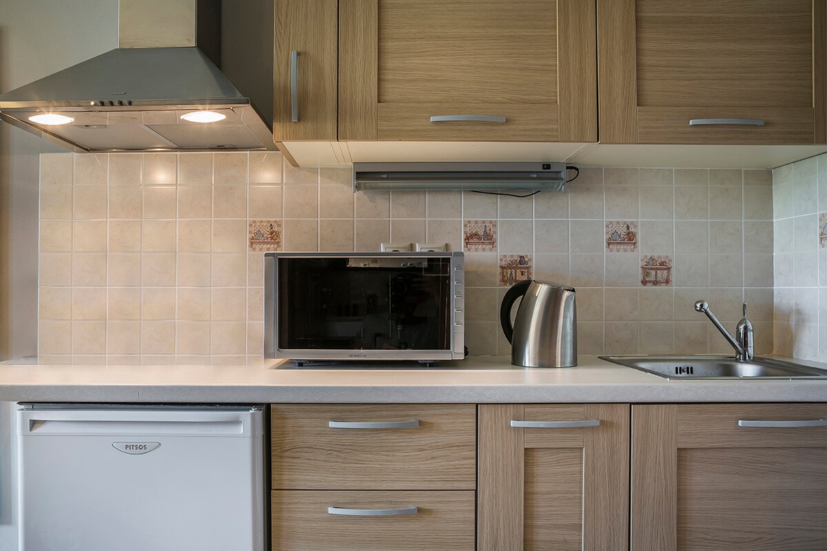 Tvårumslägenheten är vårt mest omfattande boendealternativ, perfekt för större familjer eller två par som reser tillsammans. Denna layout erbjuder två distinkta sovrum, ett centralt vardagsrum och, i utvalda enheter, bekvämligheten med två privata badrum. Med en stor matplats och en generös terrass med utsikt över egendomen, ger det den ultimata komforten för en längre vistelse på den vackra ön Kefalonia.