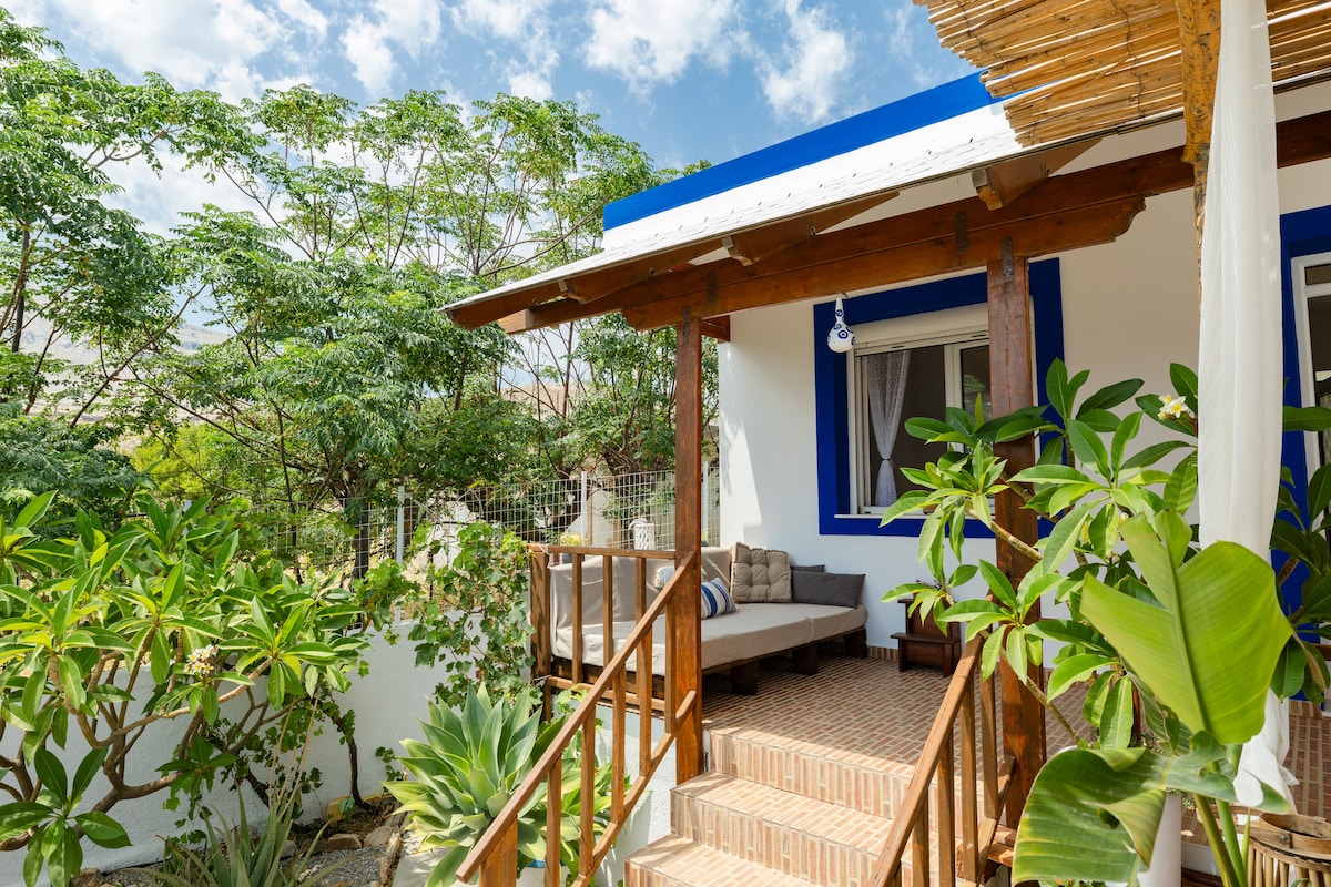 The imposing stone arch of Villa Acacia has tirelessly supported its wooden roof beams for over a hundred years. This historic structure, with fireplace and staircase to two raised sleeping areas, creates a unique blend of traditional and modern touches. Discover two private courtyards with breathtaking panoramic sea & mountain views, perfect for relaxation. Fully equipped with a BBQ, sun loungers, and outdoor shower. Experience unique spaces crafted from wood, iron & stone for your ideal escape