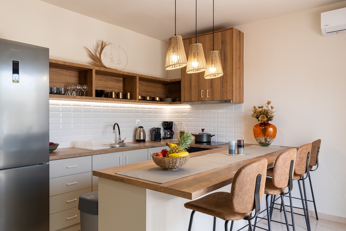 Välkommen till Gaea Loft, din fridfulla tillflyktsort med hisnande utsikt över hav och berg. Fördjupa dig i fantastiska soluppgångar och livliga solnedgångar. Kliv in i vår förtrollande trädgård, sprängfylld med en mängd ekologiska grönsaker, redo att plockas och njutas av. Njut av utomhussammankomster på vår grillplats, omgiven av naturens lugn. Koppla av på den frodiga gröna gräsmattan eller i vårt mysiga vardagsrum utomhus. Utforska närliggande vandringsleder, stränder och fördjupa dig i den livliga lokala kulturen.
