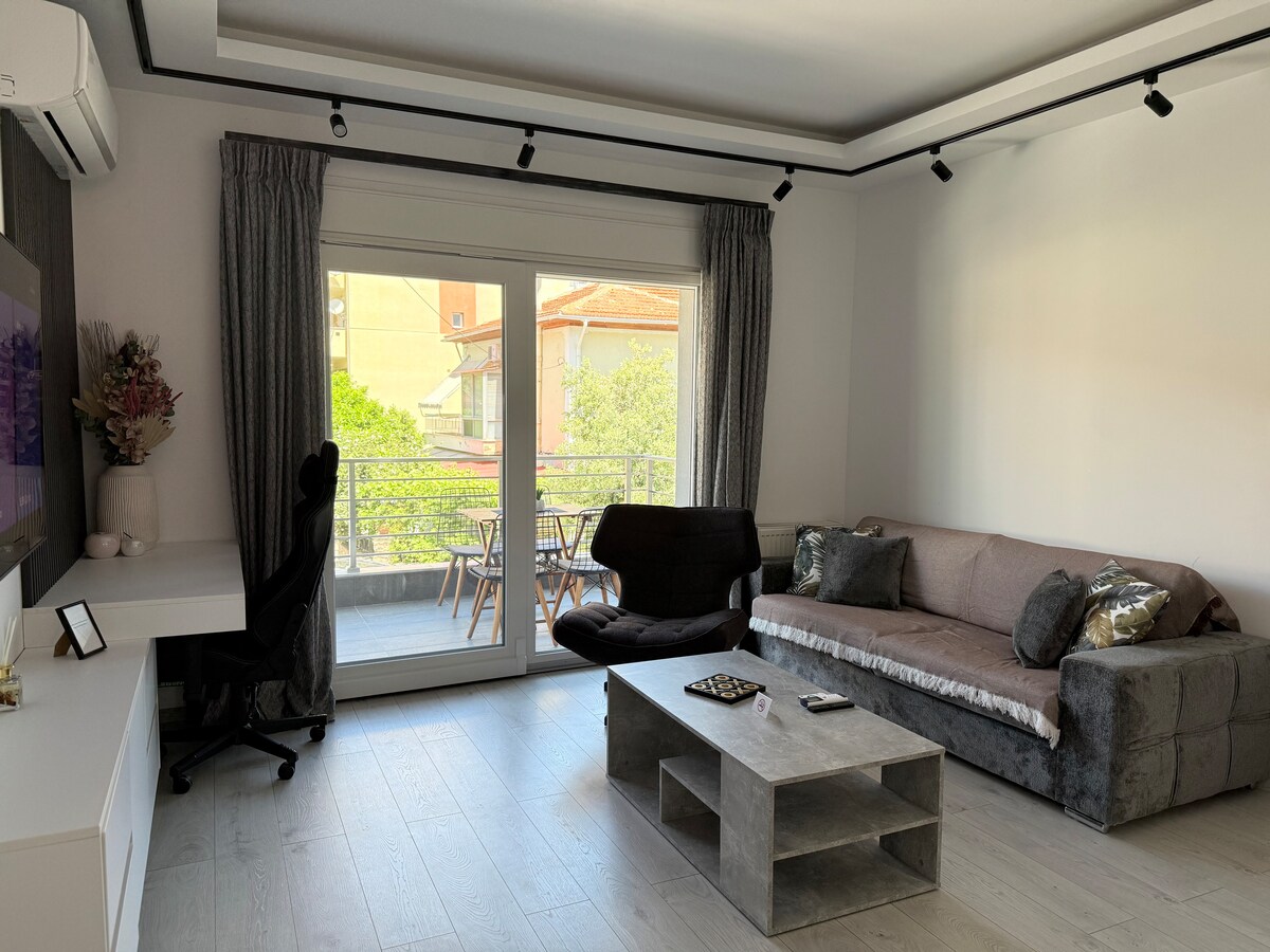 Lyxig lägenhet i hjärtat av Kavala. Beläget på Omonoias som är shoppinggatan. Bara ett par minuter till fots från centrum och havet. Säkert och lugnt område. Det finns två stora livsmedelsbutiker 50 m från lägenheten där du kan köpa färsk mat och nödvändigheter. Du kan parkera bilen på gatan precis framför lägenheten gratis.