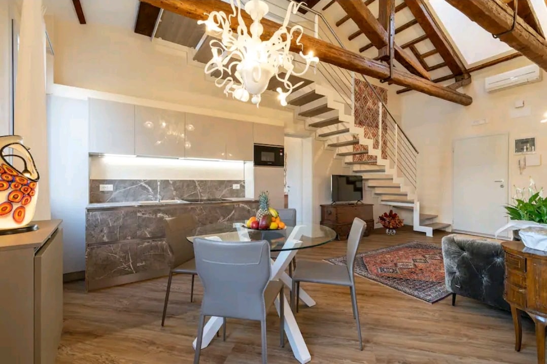 Mys med en bok, ät frukost och middag medan du beundrar den otroliga utsikten över klocktornen och kanalerna i Venedig, lev som en sann venetianare i det mest typiska distriktet i Venedig några steg från Rialtobron, Ca 'D' oro och San Marco i en lägenhet med möbler och prydnader gjorda av venetianska och Murano hantverkare. Du kommer att känna att du upplever den fantastiska atmosfären på 1800-talet men med alla bekvämligheter som en modern lägenhet har. Missa inte denna fantastiska upplevelse