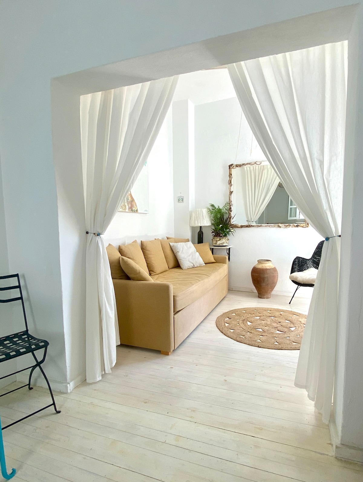 Bara några steg från Panormos strand, njut av din semester i vårt lugna och eleganta utrymme. Trä och vitt möts och skapar ett juvellutrymme som lovar att ge dig komfort och avkoppling.