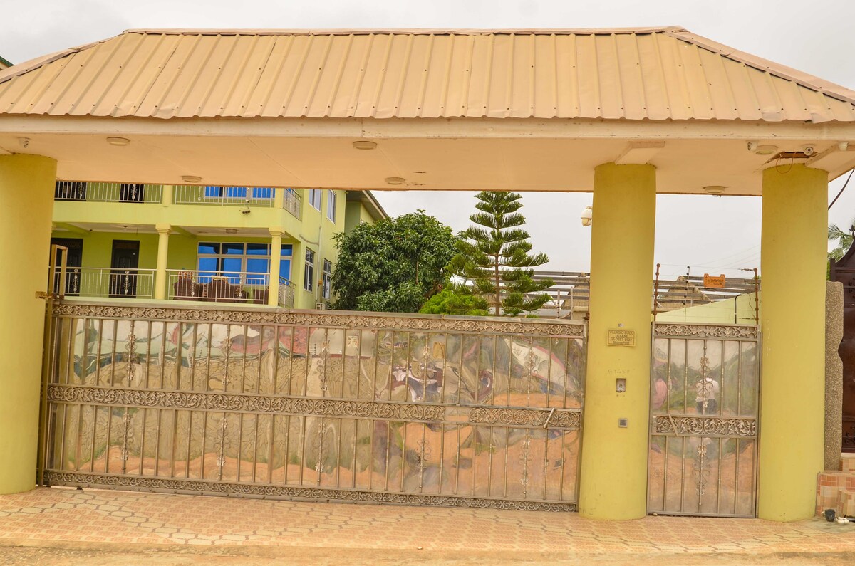 Ta med hela familjen till denna fantastiska fristående slutplats med massor av plats för skoj. 1500 m från stranden med våg surfskola. Bra ställe för terrängcykling som hyr MTB på begäran, det finns också en enduro motorcykel 200cc för uthyrning int'l körkort krävs. På begäran kock tillgänglig för frukostmiddag etc. eller tvätt-/städtjänster. Vi kan ordna resor till Cape Coast slaveri museum, Kakun nationalpark eller någon annan plats. Kan också ordna hämtning på flygplatsen.