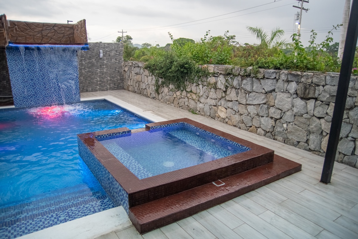 Koppla av med din familj på denna mysiga tillflyktsort omgiven av vacker utsikt över bergen. Vi ligger bara 25 minuter från Ramon Villeda Morales flygplats, 45 minuter från stränderna i Tela och 5 minuter från centrum av El Progreso, vilket gör vårt hus till en lugn plats men nära till allt. På gångavstånd hittar du mini super och ett torg med restauranger, apotek, bank, kaféer, där du kan njuta av de lokala smakerna.
