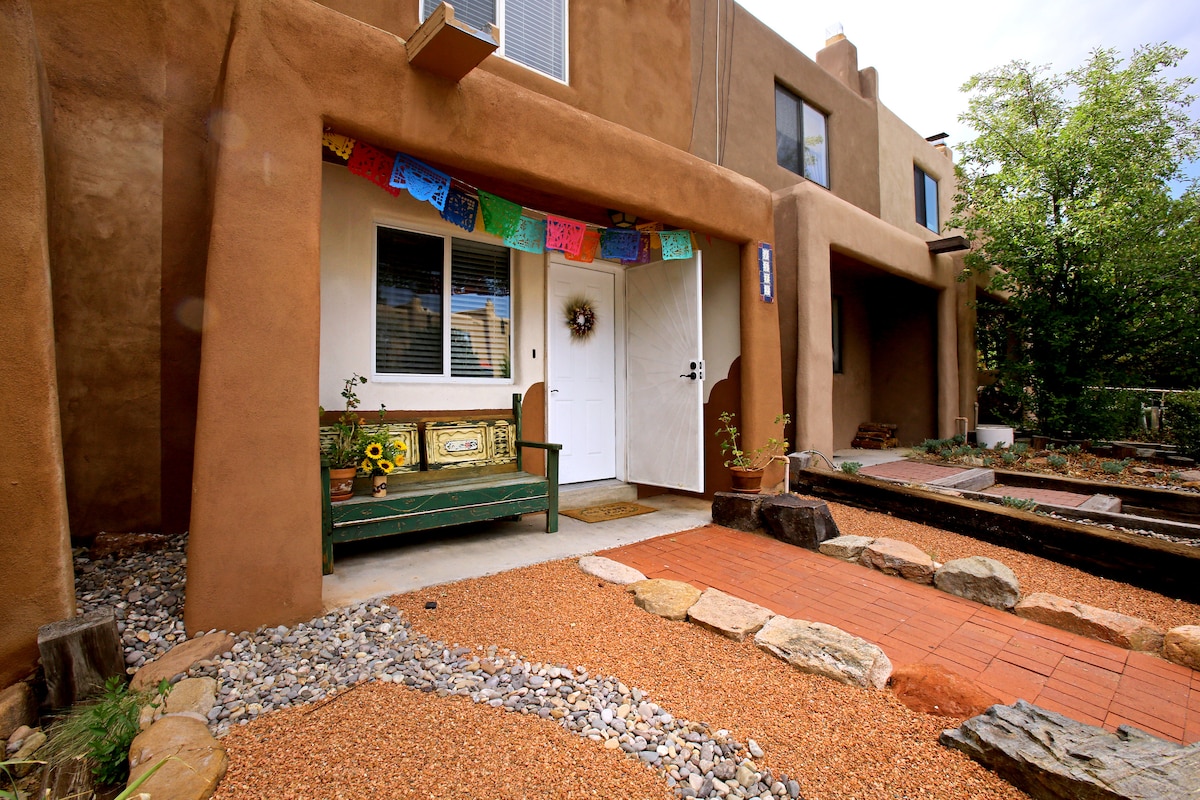 Garden Adobe Casita är ett privat adobe gästhus två miles väster om den historiska plaza, nära Santa Fe River trail, Farmers Market, Railyard district och mycket mer! Denna casita med ett sovrum byggdes 1949 som en del av en historisk gård och erbjuder 500 kvadratmeter mysigt bostadsutrymme och moderna bekvämligheter. Casitan ligger inbäddad utanför huvudvägarna och omgiven av en produktiv ekologisk trädgård. Dina värdar delar gärna med sig av färsk frukt och grönsaker till dig under vår- och sommarmånaderna!