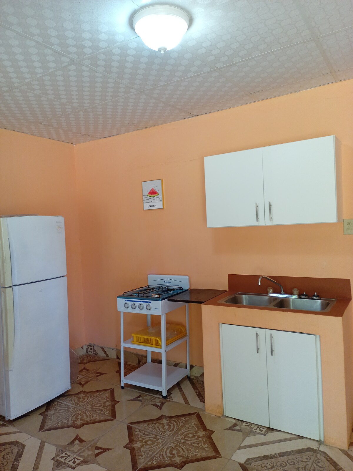 Minihus perfekt för 1-2 personer. Det har en dubbelsäng, eget badrum, garderob, TV, wifi och takfläkt. Inbyggt kök med frukostbord, kylskåp, mikrovågsugn, kaffebryggare och köksredskap. Beläget i ett lugnt och säkert bostadsområde, bara 10 minuter från Aguadulces centrum. Perfekt för dem som behöver ett bekvämt och tillgängligt ställe att vila på under sin promenad genom staden.