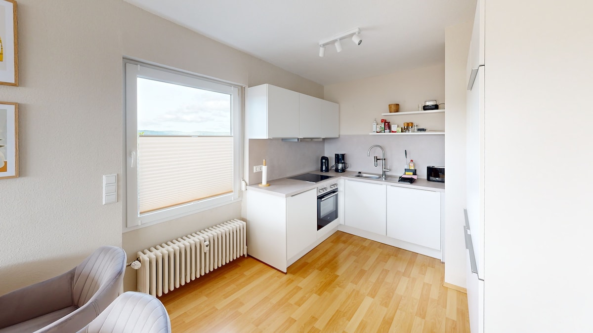PÄ 1000 meters höjd vÀlkomnar vi dig med en fantastisk utsikt över Schonach och Schwarzwald. Koppla av i en lÀgenhet som totalrenoverades 2023 med toppmodern inredning och stor kÀnsla för detaljer. Oavsett om det Àr ett riktigt trÀd i vardagsrummet, ett blommigt tÀcke över sÀngen, korsvirkade vÀggar, en regndusch i skogen eller ett Àkta stentvÀttstÀll: designÀlskare kommer inte att bli besvikna av de mÄnga högkvalitativa detaljerna. BelÀgen precis vid skogsbrynet Àr Fabelwald perfekt för naturÀlskare.