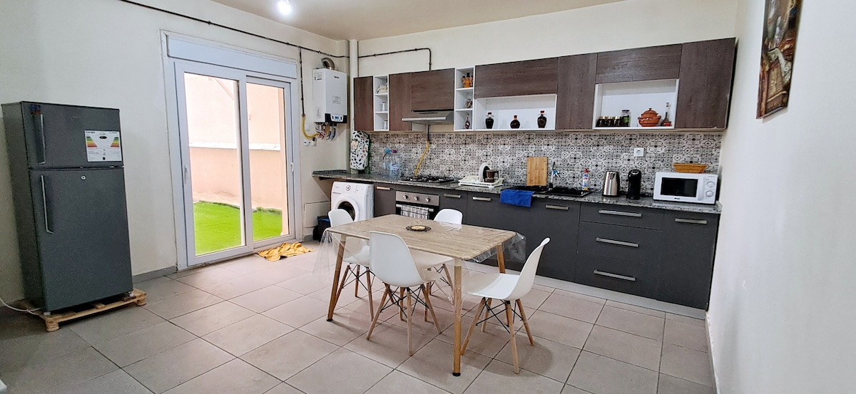 Välkommen till Dar Chahra, en säker hamn mitt i Gambetta Upptäck ett masterhus från 1800-talet, helt renoverat med omsorg för att kombinera modernitet och algerisk äkthet. Här återspeglar varje detalj våra barndomsminnen i Algeriet. Med 150 m2 bostadsutrymmen bara för dig erbjuder Dar Chahra dig alla bekvämligheter för en lugnande vistelse, oavsett om du kommer med familj eller vänner. Du kommer också att njuta av det privata garaget, innergården och den ombyggda takterrassen