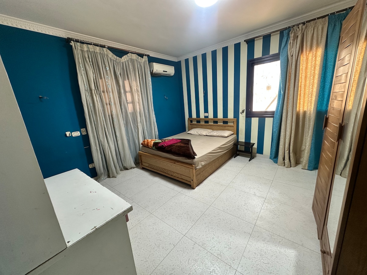 Lugnt och centralt beläget lugnt privat rum med eget badrum utanför rummet. Lägenheten ligger i ett av de bästa områdena i Kairo i Misr Al Jadidah i centrum av Kairo med enkel tillgång till överallt. Fullt konditionerad lägenhet och mycket bekväm för par eller ensamstående. Mycket säkert område med en privat byggnad vaktmästare och utmärkt grannskap. Här kan du skapa massor av minnen i denna underbara lägenhet. Omgiven av många restauranger, klubb, apotek, nav och mer