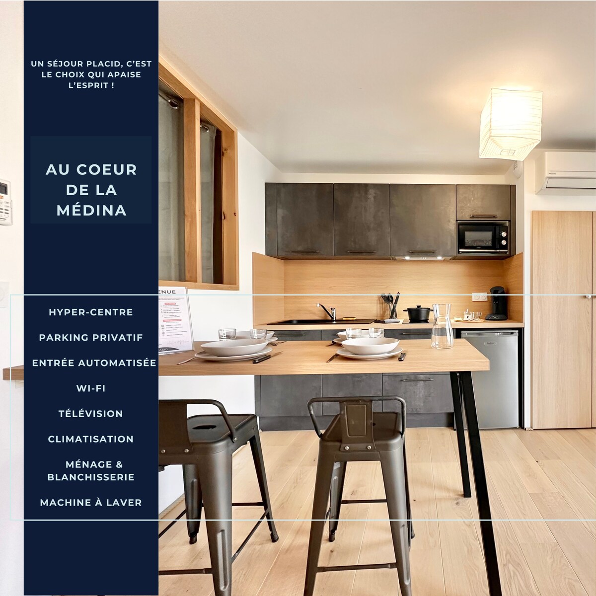 Bo i denna bekväma lägenhet på 54 m2 i ett vackert bostadsrättshus. Punkter att komma ihåg: - renoverad 2019 - en täckt terrass som vetter söderut - ett vackert inrett vardagsrum med bä bäddsoffa och platt-TV (Orange TV + Netflix) - gratis, snabbt och säkert wifi - ett zen-rum med queen size-säng - ett kök utrustat med mikrovågsugn, ugn och diskmaskin - ett förtrollande badrum I hjärtat av hypercentret ligger boendet på en gågata med shopping.
