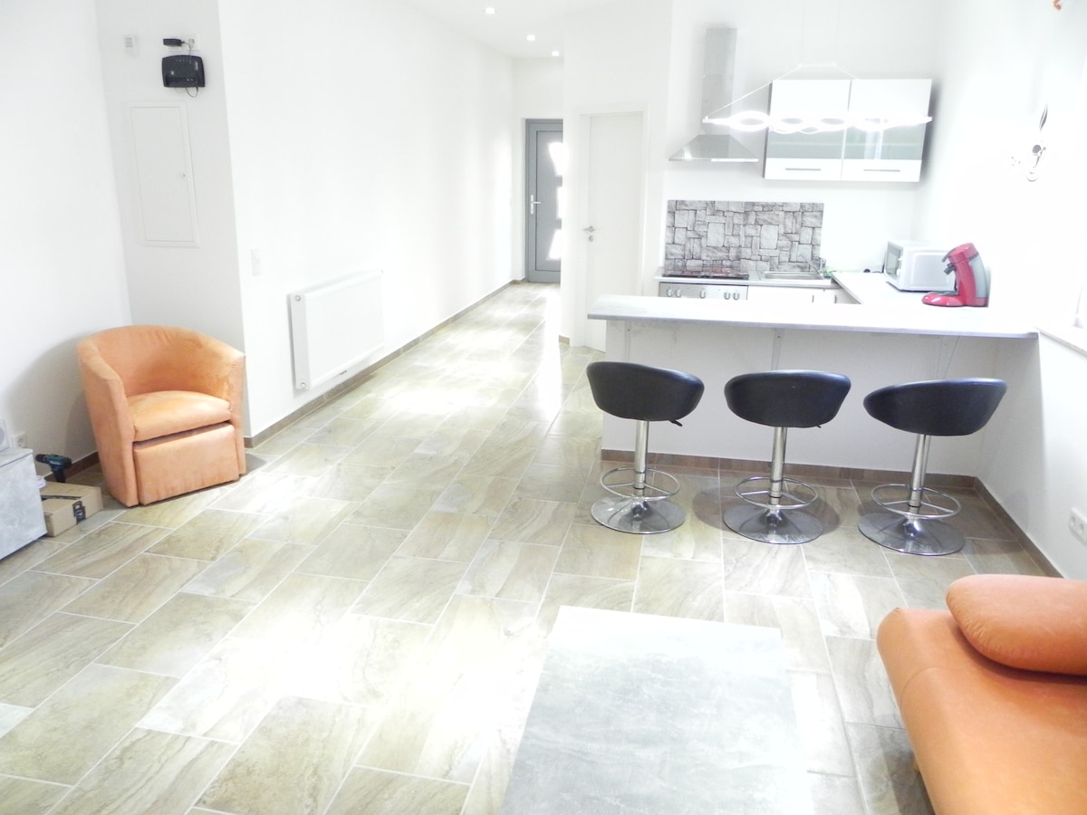 En ny lägenhet i ett lugnt läge men nära Nürneberg/Fürth/ Erlangen storstad. Den populära Playmobil Funpark ligger också inom gångavstånd med 1,5 km. Naturligtvis kan man också åka buss. Hållplatsen ligger bara 50 m bort. Gratis parkeringsplatser finns precis vid huset