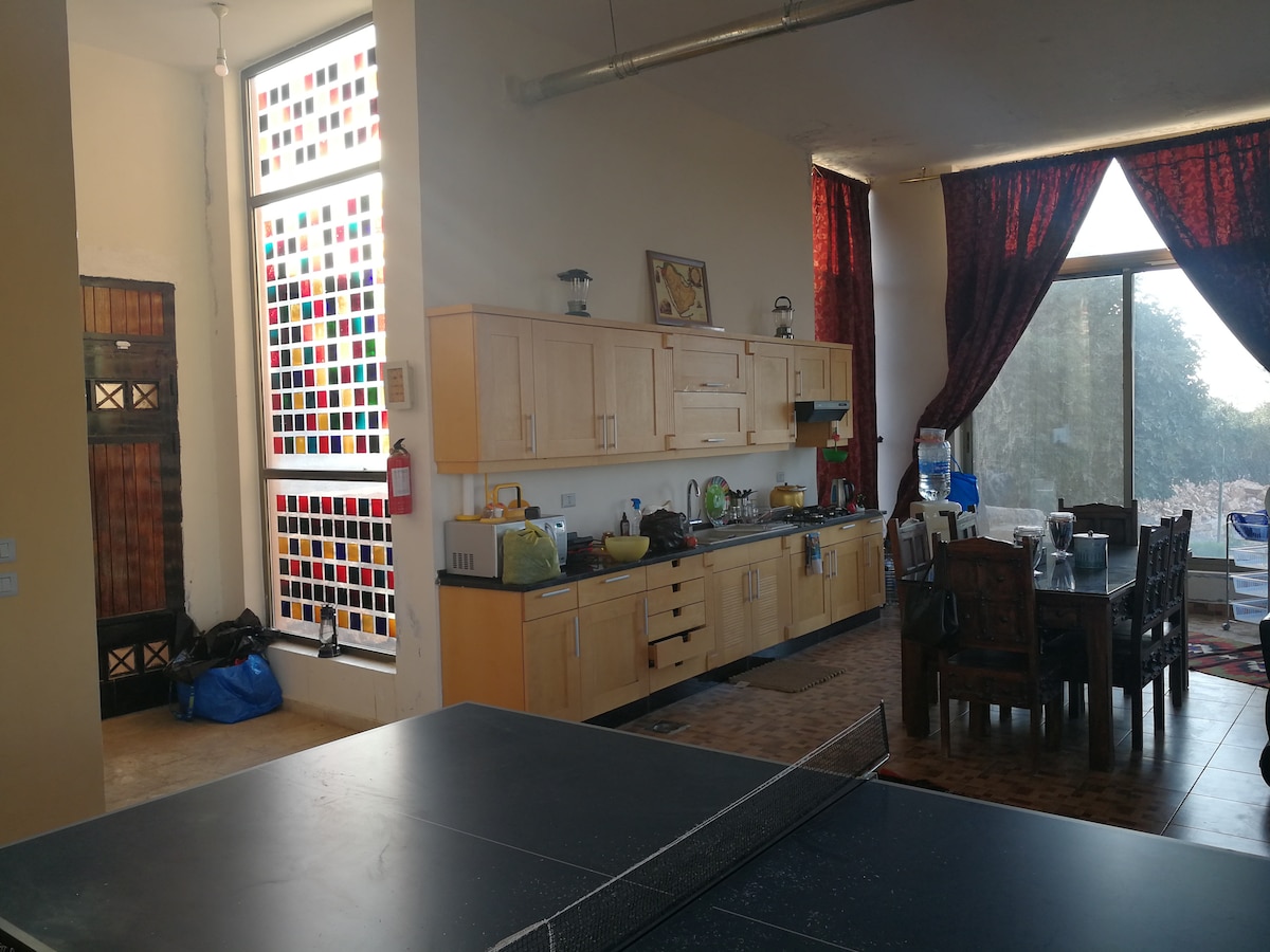 Royal Palace Farm är en privat lyxig tillflyktsort på Jerash Road, bara 25 minuter från Amman och 5 minuter från Philadelphia University. Boendet har en vacker öppen utsikt, en stor privat pool, stora grönområden, 5 sovrum, 3 vardagsrum, badrum inomhus och utomhus och ett fullt utrustat kök. Ljusa, vita sängkläder och handdukar ger en ren och elegant känsla.