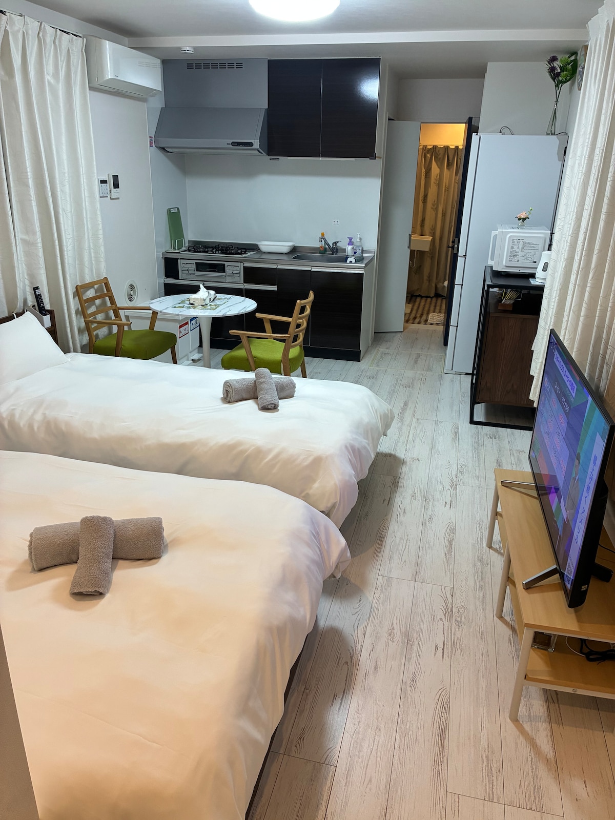 Välkommen till vårt mysiga boende i lägenhetsstil 6 minuter till fots från Higashi-Jujo station! Det är utrustat med ett privat sovrum, ett kök, ett badrum och två bekväma sängar, vilket gör det enkelt för familjer, vänner som reser tillsammans eller affärsresor. Praktisk transport: Från Higashi Jujo Station finns det direkt tillgång till Akihabara - Ueno och andra populära områden, det är också mycket bekvämt att gå till Shinjuku, Shibuya, etc., sightseeing och shopping är mycket bekvämt. Husfunktioner: Separat kök med grundläggande köksredskap för lätt matlagning Eget badrum och toalett, rent och bekvämt Två sängar, bra för 2–4 personer Beläget i ett lugnt grannskap där du kan uppleva både Tokyo-livet och kvaliteten på vila Detta är den perfekta basen för att utforska Tokyo och jag ser fram emot att vara värd för dig!