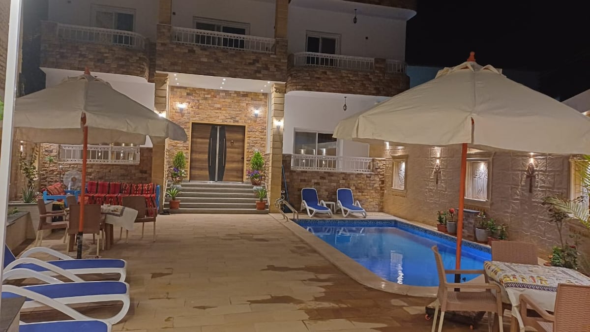 Jag välkomnar er, mina kära resenärer, till mitt eleganta och distinkta boende. Mitt hus ligger mycket nära den vackra Nilen. Jag har också förberett många vackra resor, såsom att besöka de fantastiska egyptiska templen och gravarna. Vi arbetar också för din bekvämlighet, så vi erbjuder en bil för att hämta dig från flygplatsen. (Exklusive pris för natten) Vi arbetar för din lycka och uppfyller din begäran och väntar på alla🥰. Och serverar måltider och drycker till frukost