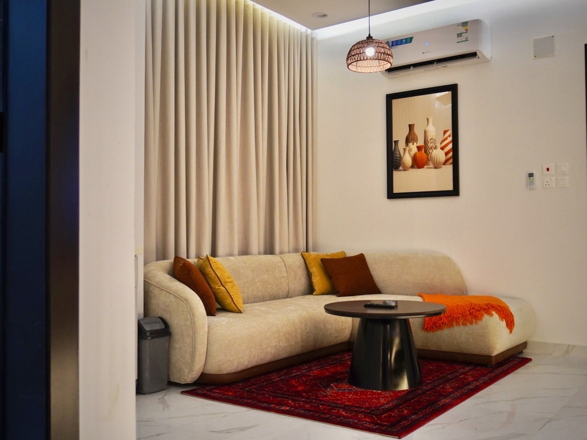 Njut av ett lyxigt boende i en lyxig lägenhet som kombinerar elegans och lugn, en bekväm dubbelsäng, avkopplande skinn, en TV med Netflix och OSN och ett fullt utrustat badrum. Utvalt läge nära exklusiva kaféer, statliga faciliteter. Perfekt renlighet och förändring av alla innehav efter varje gäst för att säkerställa hotellets bekvämlighet!