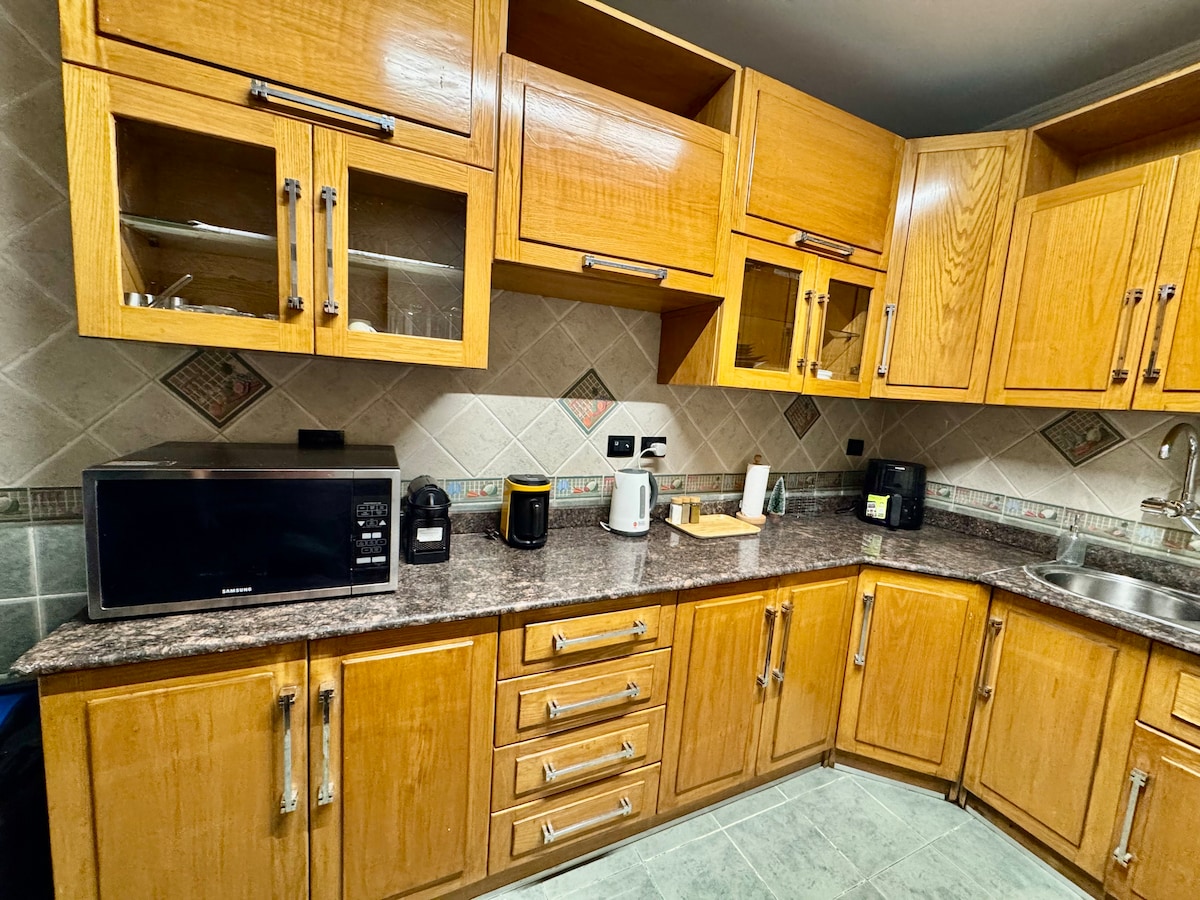 Prova en avkopplande semester med stor lägenhet med 2 sovrum (king size säng & 2 enkelsängar) och 2 badrum, ett av dem stort med ett varmvattenbadkar, och även stort vardagsrum med smart samsung Tv, matbord, ett stort kök och alla bekvämligheter du behöver med en fantastisk landsacpe trädgårdsutsikt med en ganska och fridfull ... gratis parkeringsplats hela dagen och hiss för enheten, kortspel också tillhandahålls, 3 min promenad du hittar hela gatan med en restauranger, kaféer, dryckesbutiker njut här