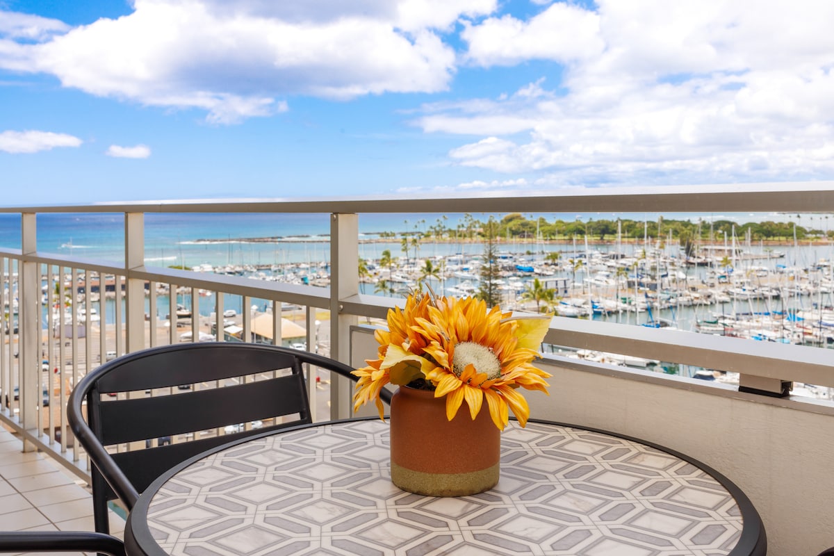 Njut av solnedgångar över havet – nyrenoverad Ilikai-lägenhet