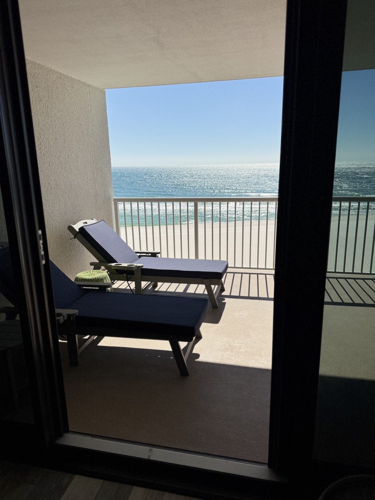 Upplev lockelsen av Gulf Shores och fantastisk strandutsikt från den privata balkongen på 9:e våningen. Fullständiga bekvämligheter garanterar en oförglömlig vistelse. Perfekt för familjer, arbete/sport evenemang, romantiska flykter eller soloäventyr. Precis vid Gulf of Americas sockersandstrand, erbjuder bekväm närhet till State Pier, Hangout och restauranger vid stranden. Boka nu! *** Militärrabatt tillgänglig för aktiva/pensionerade militärer och veteraner Royal Palms 902 ägs och förvaltas privat