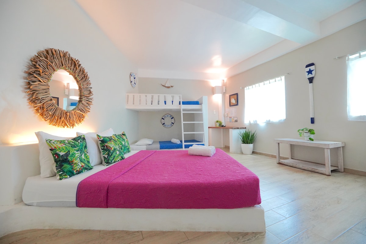 Relax in this breezy space with 2 queen-sized beds, 1 toilet and bath, and stunning sea and pool views—perfect for up to 4 guests. The space is bright and airy, with plenty of natural light and a calming atmosphere. Ideal for couples, friends, or families looking for a peaceful escape. Stay connected with WiFi, unwind by the pool, and enjoy the ocean breeze from your window or balcony.