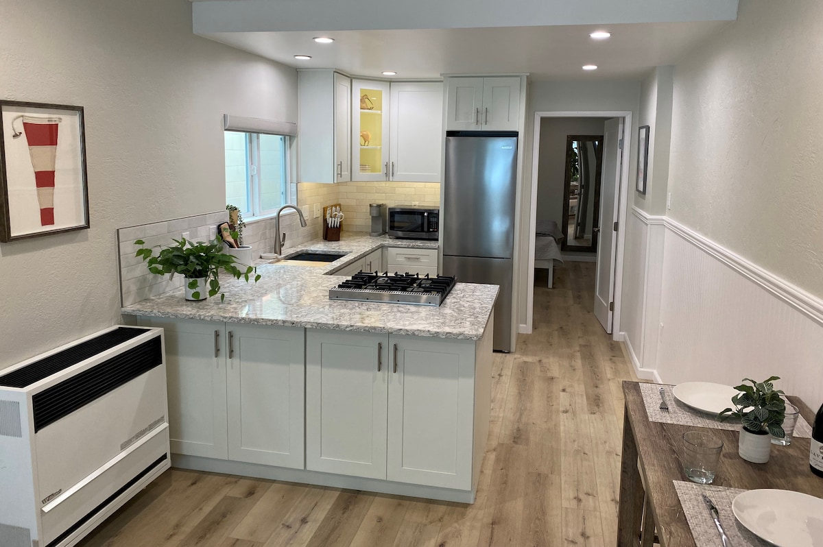 Njut av ett lugnt, ljust och modernt utrymme på pittoreska och exklusiva Peninsula. Steg från både havet och bukten. Gångavstånd till Belmont Shores restauranger och butiker. Nära LB Conv Ctr. & cykel-/kajakuthyrning. Studio apt med A/C & snabbt, pålitligt wi-fi. Casper-säng i full storlek och bekvämt arbetsutrymme. Fullt utrustat kök. Strandstolar, handdukar och paddelbräda tillhandahålls för att maximera din "vistelse i bukten." Utrustad med Keurig för din kaffeglädje. Det finns ett populärt café på gångavstånd.