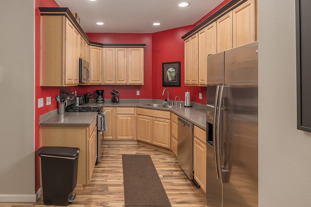 Detta otroliga timmerhus har ett lyxigt sovrum med en dubbelsäng och ett privat badrum på loftet. På nedervåningen finns tre queen-sängar och ett bekvämt halvt bad med tvättmaskin och torktumlare. På bottenvåningen finns ett fullt utrustat kök, ett badrum och ett mysigt vardagsrum. De sex barstolarna runt köksbaren och matbordet för sex personer ger gott om utrymme för att underhålla upp till tolv gäster.