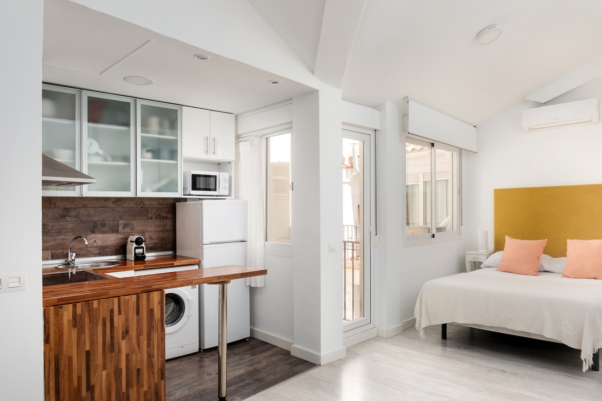 Fantastiskt boende med balkong, ett sovrum, två badrum, vardagsrum och kök mitt i centrala Malaga. Gemensam tvättstuga på bottenvåningen. Historisk byggnad nyrenoverad 2020 med exklusiv inredning. Andalusisk turistregistreringsnummer: A/MA/01931 Málagas centrum är en gågata. Vi har ett samarbetsavtal med en närliggande parkering "Parking las Delicias" till en kostnad av 15 € per dag. Det är nödvändigt att boka minst 2 dagar i förväg.