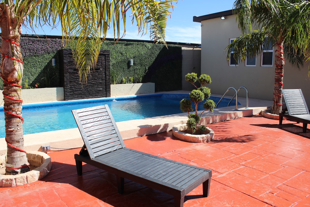 Din familj kommer att ha nära till allt om ni bor i detta centralt belägna boende, bara 2 minuter från huvudtorget. Nära Oxxo, bensinstation, med fruktträd och utomhusrastplats med gungstol och stolar, plus privat pool, med uppvärmt vatten med toalett och utomhusdusch. Det perfekta utrymmet för vila och avkoppling. Förutom ett garage för två bilar och en grind med lås.