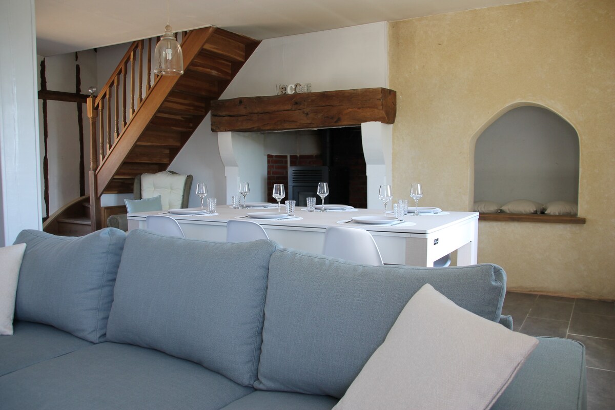 Ett litet men mycket tyst parhus i exponerad sten och stora ekbjälkar typiska för abborre (naturligt ljus ockra gips, moderna vita möbler och massiva ekmöbler). Små terrasser: en front mot söder som mynnar ut på en ihålig stig, en svalare baksida i köksträdgården. Häst, åsna+skogsfält i närheten. Möjlighet till cykeluthyrning på plats för att besöka herrgårdar eller gamla byar i närheten. Garage för cyklar.
