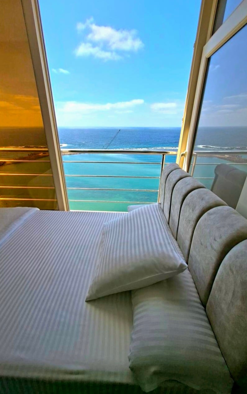 Din lyxiga, renoverade semesterbostad vid Medelhavet på 18:e våningen i Alexandria! 🌊🏖️ Föreställ dig att vakna till panoramautsikt över havet från alla hörn i din lägenhet – även från din säng! Denna rymliga lägenhet är utformad för att maximera din havsupplevelse och är perfekt för familjer. 3 sovrum med luftkonditionering, vart och ett med två 120 cm sängar. Matsalen, receptionen och vardagsrummet erbjuder hisnande havsutsikt mot väster, norr och öster, perfekt för att njuta av den friska, svala brisen och idealiskt för att sola i den varma solen.