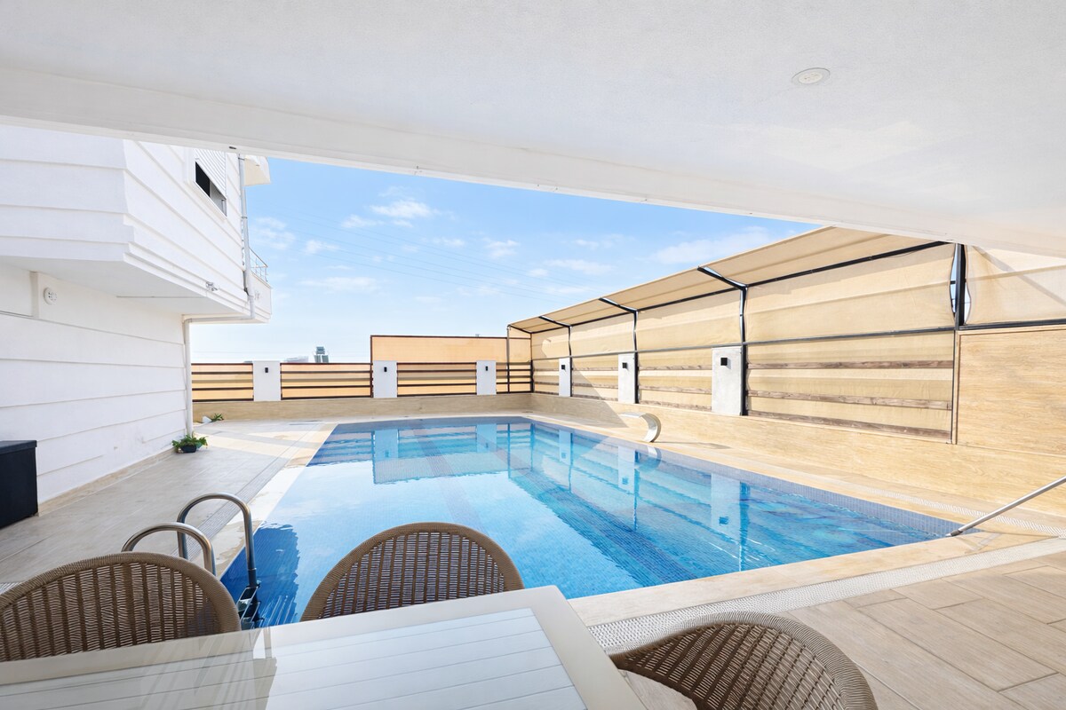 Kumsalda yer alan ve XL Jakuzi, firepit, sinema, şömine , salıncak , barbekü ve çok sayıda lux olanaklarla donatılmış bu eşsiz daire sizi bekliyor. Dairede 2 büyük teras, banyo ve mini mutfak bulunmaktadır. Daire 3. katta bulunmakta ve kullanımı yalnızca size ait asansörle giriş sağlanmaktadır.Binadan bağımsız giriş ve özel kullanım alanlarına sahiptir.